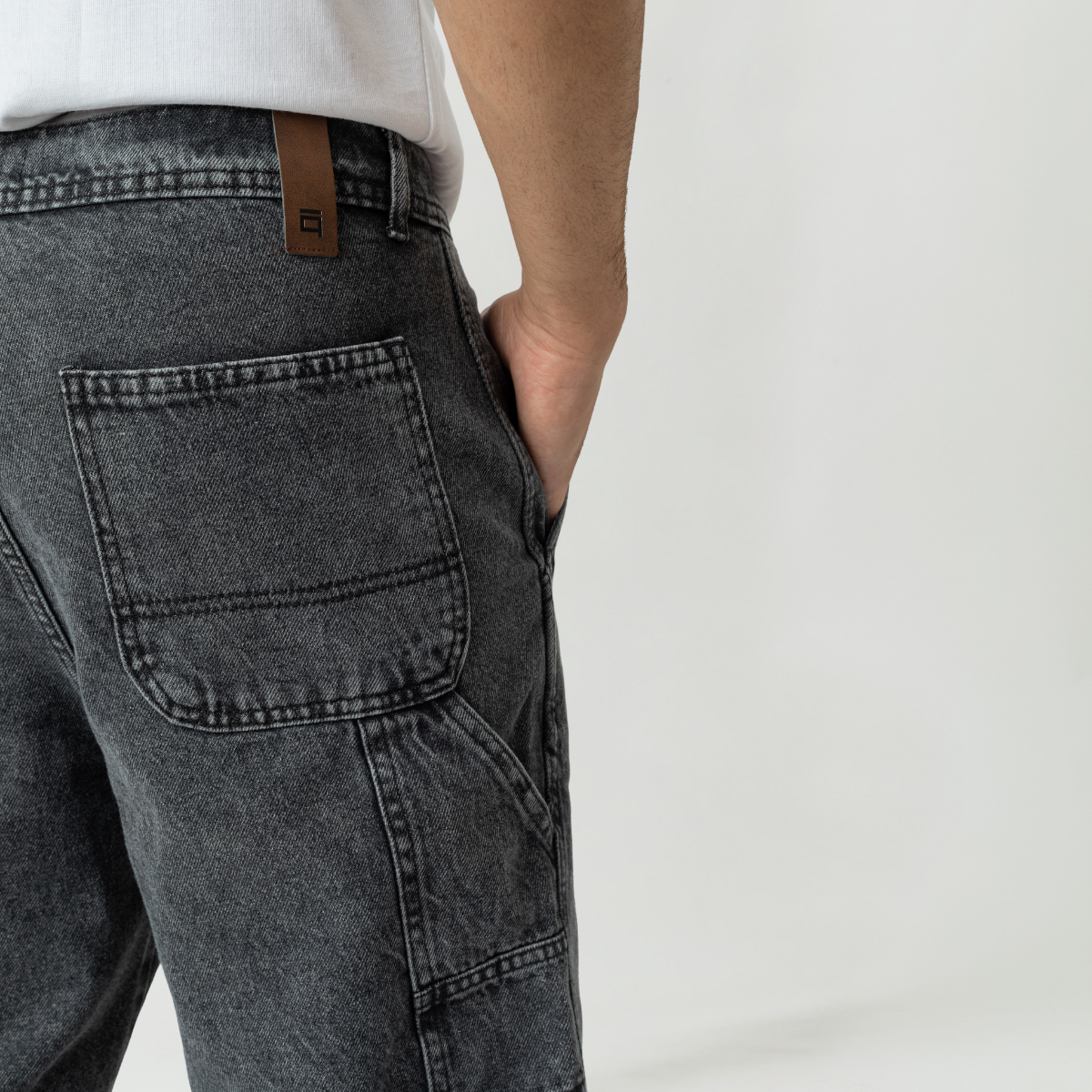 These washed black denim cargo shorts feature a relaxed, knee-length fit with functional pockets, including side, back, and a large utility pocket for added practicality. Designed with a vintage-inspired faded finish, they pair effortlessly with casual outfits. Comfortable and versatile, they are perfect for everyday wear or outdoor activities.
