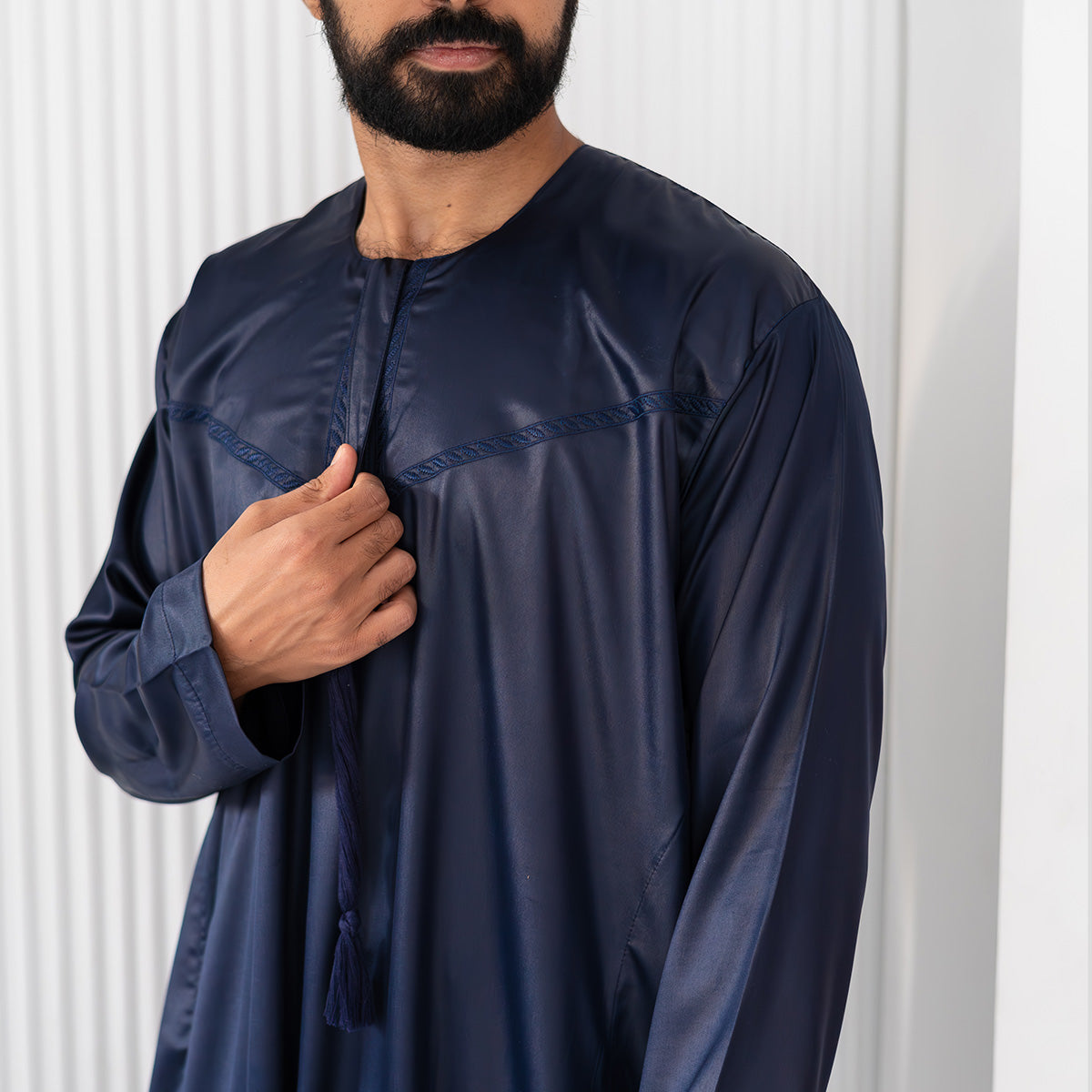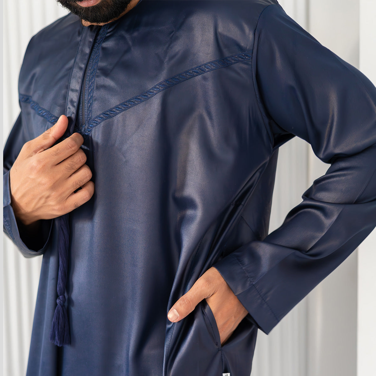 Indulge in the luxury of the new Thawb by Stabraq. Perfect for dawn and Eid prayer, its Light and soft fabric will keep you Comfort. Practical and exquisitely embroidered, crafted with mastery.