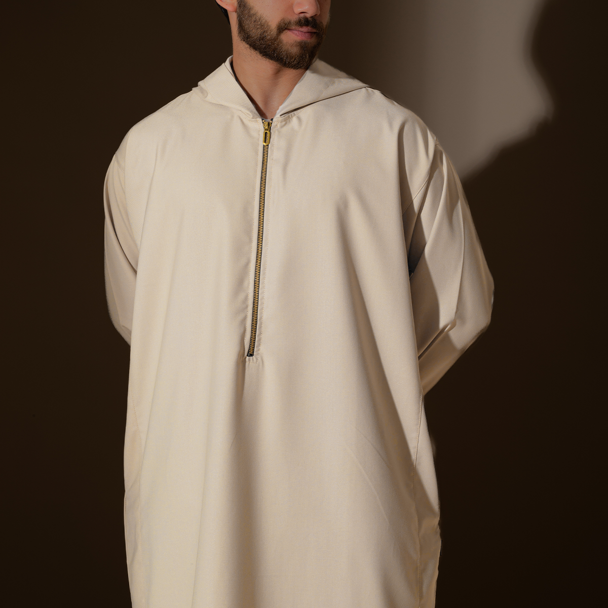 Introducing our exclusive line of clothing designed to complement your unique style and identity. Made from a blend of the highest-quality cotton (78%), polyester (16%), and stretch fabric (6%), our clothing is both comfortable and durable. The Golden fabric is soft and breathable, making it ideal for wearing during prayer. With its elegant design, our clothing is perfect for any occasion. Try it today and elevate your daily wardrobe!